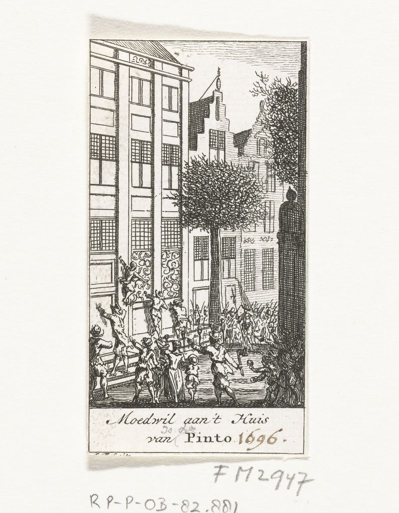 De pracht en praal die de toonaangevende Joodse familie de Pinto uitdroeg om zich te manifesteren als trotse joden, wreekte zich in 1696, het jaar waarin hun huis geplunderd werd ten gevolge van het Aansprekersoproer. De burgerij trad op: ‘Het huijs was van boven tot beneden schrickelijck met bloed bespat ende besoetelt. Het vloeijde langhs de trappen en op de vloer als water’. Ook werd er snelrecht toegepast en in minder dan een dag werden een aantal plunderaars ter dood veroordeeld. Een van oproerkraaiers zou opgehangen zijn met het gestolen gele tafelkleed van de Pinto’s nog om de schouders. De Pinto’s, op het moment van de plundering toevallig in Den Haag bedankten vriendelijk voor een vergoeding van de stad en compenseerden het verlies uit eigen middelen.