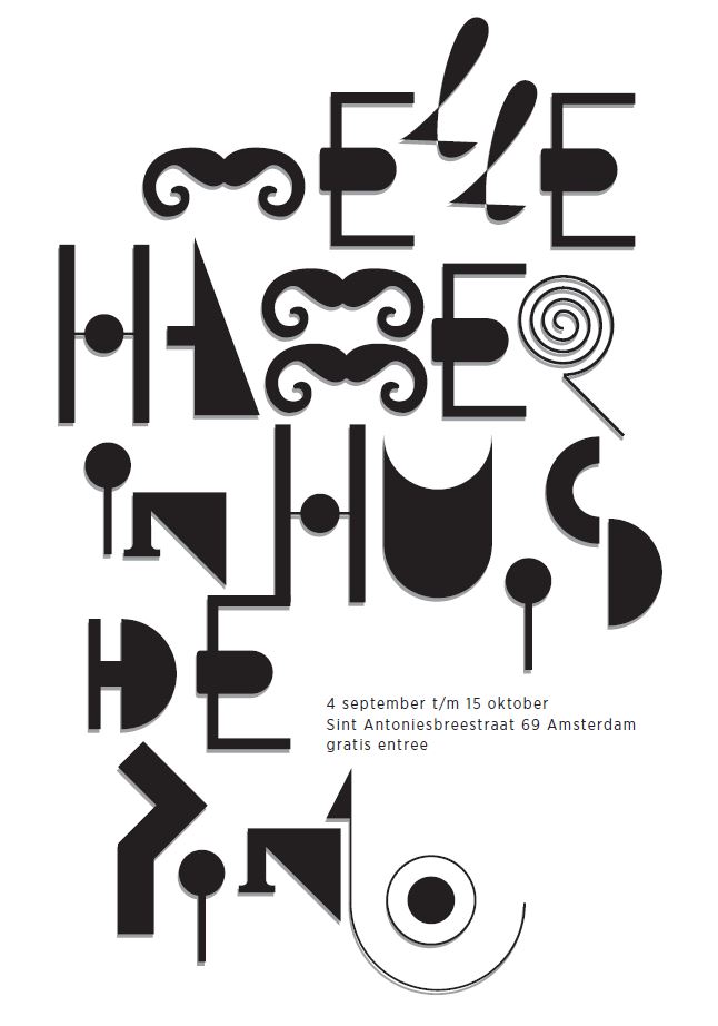 Melle Hammer (1956) beweegt zich op het vlak van letterontwerpen, grafische vormgeving en beeldende kunst. Hij beweegt zich met grote inventiviteit tussen diverse disciplines en weet steeds verrassende vondsten toe te passen in zijn werk. In de voorruimte van Huis de Pinto maakt hij een beeldend gedicht met sprokkel-tekens: gevonden objecten die samen een talig karakter hebben. In de leeszaal exposeert hij zijn tijdloze kalender.