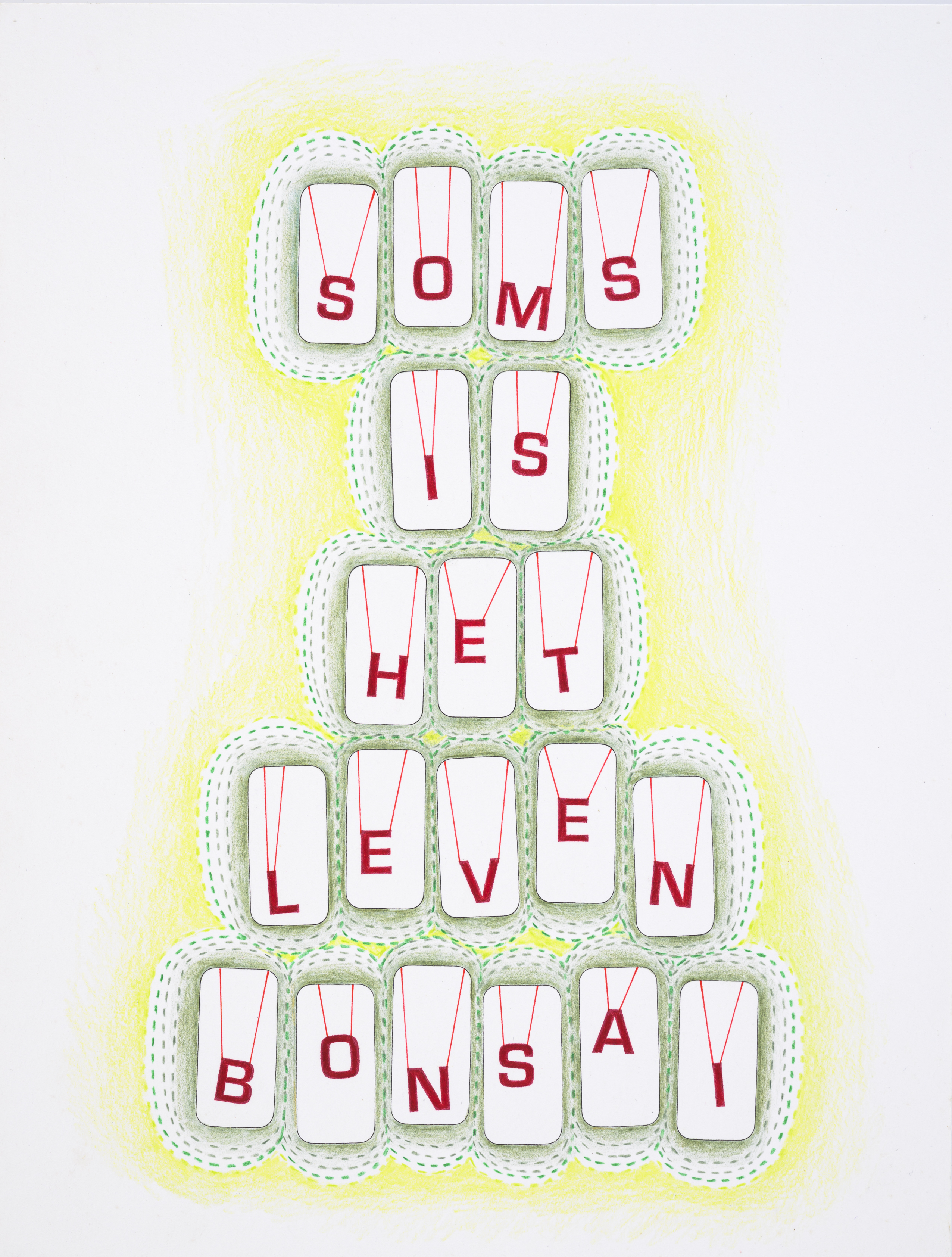 Willy Looyen maakte blinddrukken van teksten in braille. Door teksten over spreken en zwijgen wit op wit te